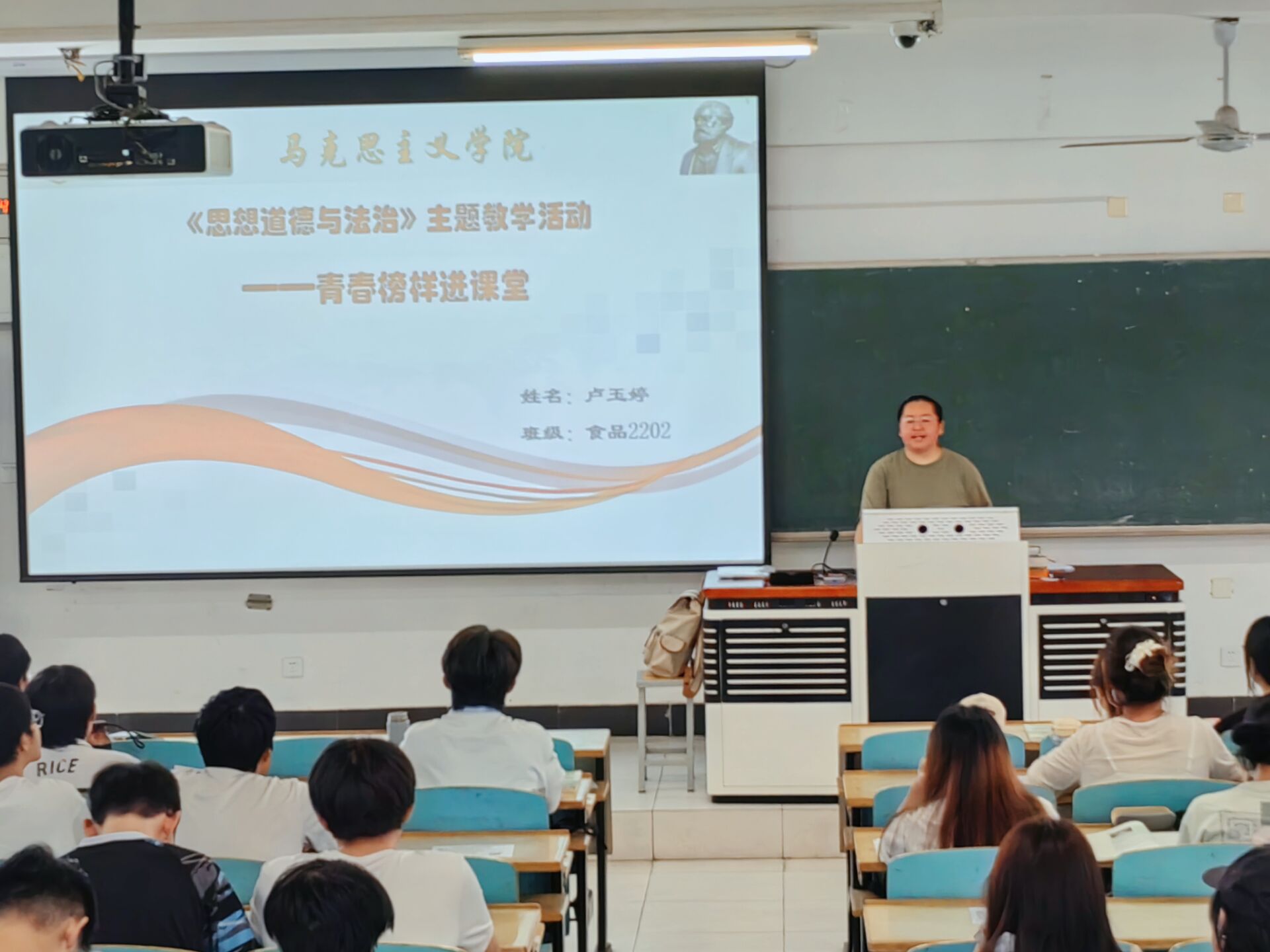 本次活动遴选了9名国家奖学金获得者、科创竞赛获奖者、志愿服务典型等优秀学子组成“青春榜样讲师团”,深入全校60余个班级的《思想道德与法治》课堂。讲师团成员以“中国共产党人精神谱系第一批伟大精神”为主线,结合自身成长经历与学习实践,从“朋辈视角”讲述奋斗故事、分享学习经验、传递理想信念。同学们纷纷表示“原来榜样不是遥不可及的,而是把平凡小事做到极致的身边人”,要将感悟转化为行动,立志在实践中锤炼本领、贡献青春力量。