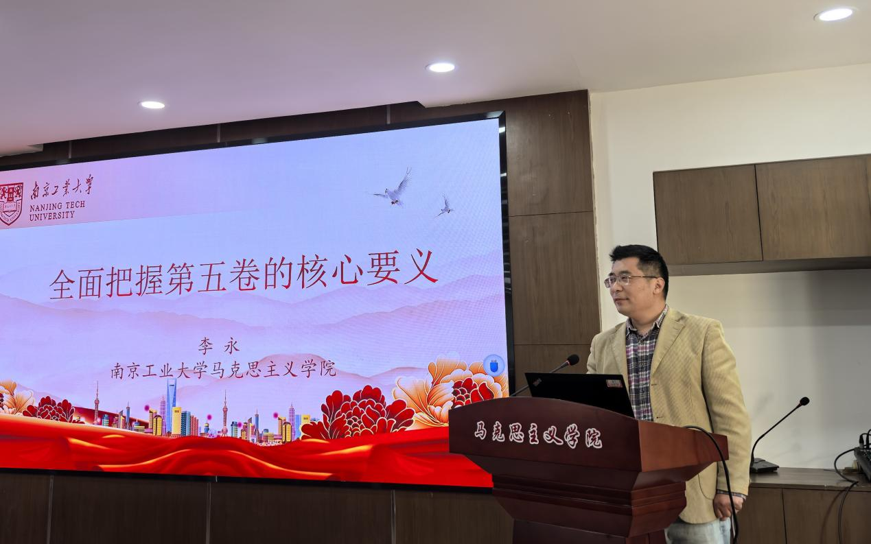 会上,李永老师以《全面把握第五卷的核心要义》为题,为支部党员教师们带来了一场内容丰富的理论辅导。他主要从把握《习近平谈治国理政》第五卷的背景和概况、《习近平谈治国理政》第五卷的主要内容、《习近平谈治国理政》第五卷的学习方法三个方面展开。