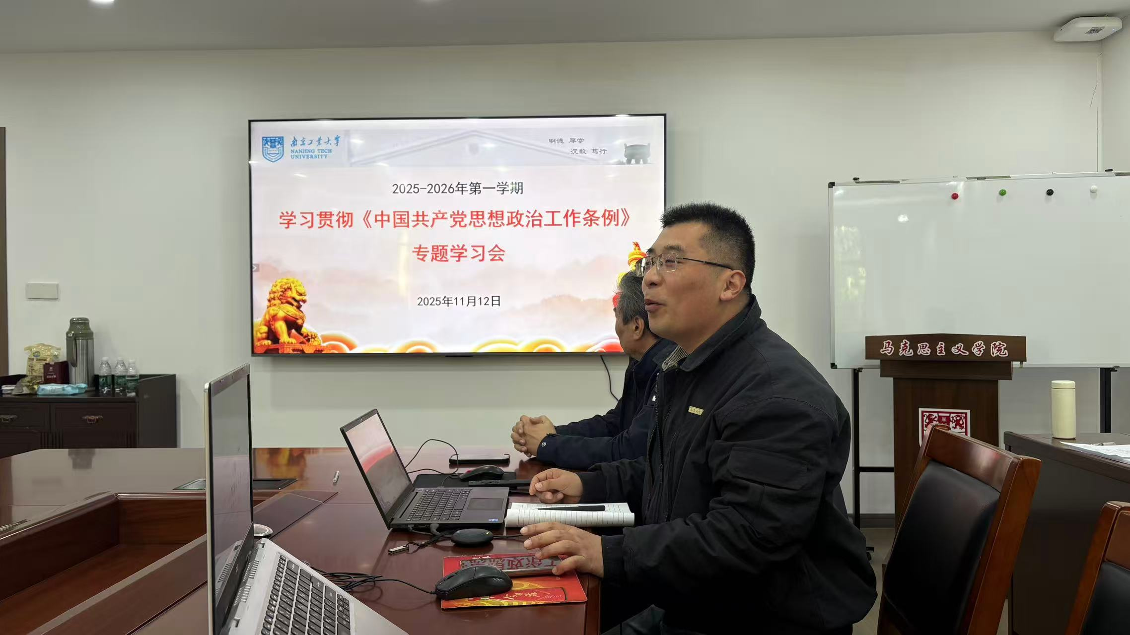 首先,李永老师领学了《条例》内容。随后,与会教师党员们结合自己的思政课教学工作实际,围绕《条例》展开了深入交流。最后,张振海书记做总结发言。他指出,《条例》是我们党历史上第一部关于思想政治工作的统领性、综合性基础主干法规,是做好新时代思想政治工作的基本遵循。党支部应当把思想政治工作摆在更加突出的位置,全体党员应当养成做思想政治工作的习惯,不断提高思想政治工作能力,善于做深入细致的思想政治工作。