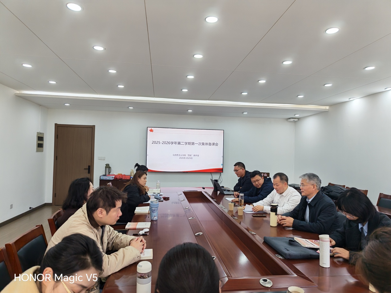 2026年3月25日下午,在bv伟德国际1946统一工作部署下,“四史”教研室举行了本学期第一次集体备课会,院长陈红喜、院长助理刘海存出席了本次备课会。