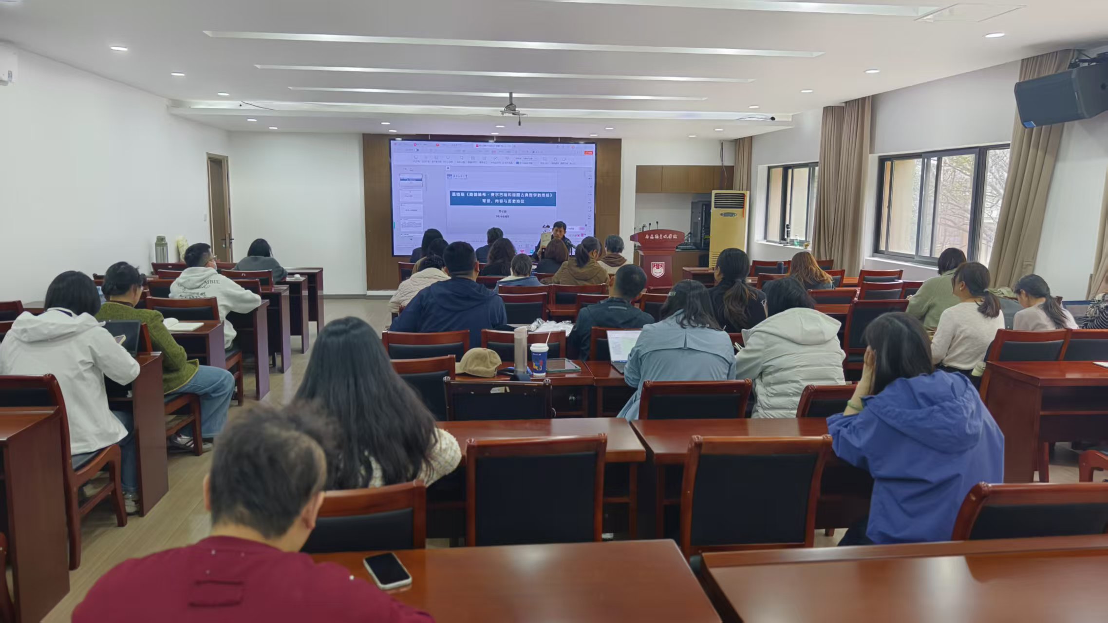 开班仪式后,马克思主义基本原理教研室贾可春教授作首期主题授课。他围绕马克思《关于费尔巴哈的提纲》与恩格斯《路德维希·费尔巴哈和德国古典哲学的终结》两部经典原著,从写作背景、核心观点、理论贡献及当代价值等方面进行了系统深入的阐释,引导学员深刻理解马克思、恩格斯如何批判地继承黑格尔辩证法、扬弃费尔巴哈唯物主义,最终实现哲学史上的革命性变革,为学员准确把握马克思主义哲学的理论来源与独特品格提供了清晰的思想脉络。