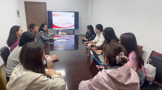 在实践教学环节,教研室系统梳理了当前实践教学开展情况,协调各位教师推荐的优秀作业主题分布,并进一步明确了优秀作品的选拔标准与要求。理论学习方面,与会教师围绕“周末理论大讲堂”分享学习心得,同时对“青春榜样进课堂”活动的组织实施及问卷反馈进行了总结交流。